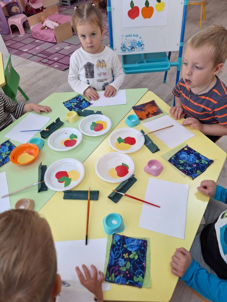 Сегодня во второй младшей группе мы с ребятами занимались творчеством! Делали аппликацию на тему «Яблочко с листочком». В процессе занятия воспитанники развивали умение составлять образ из готовых элементов, аккуратно наклеить их. Каждый малыш старался, чтобы его яблочко получилось самым красивым и аппетитным.