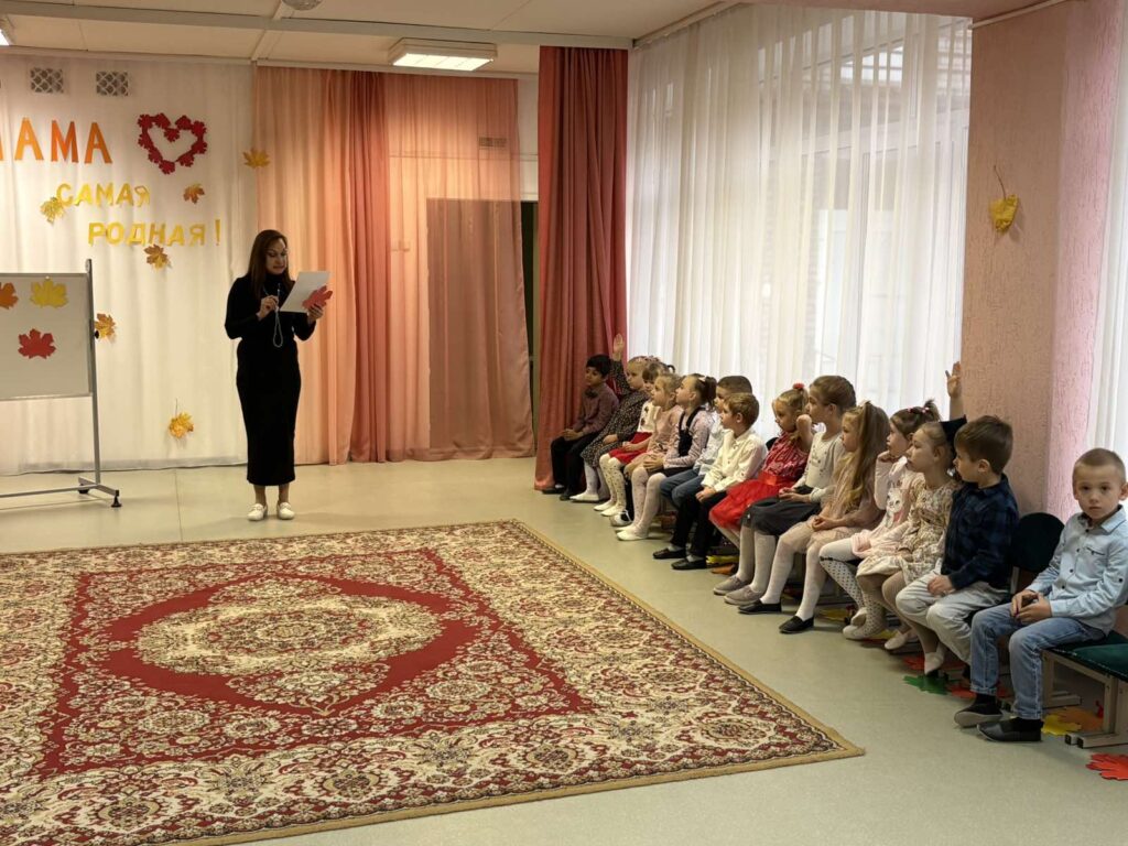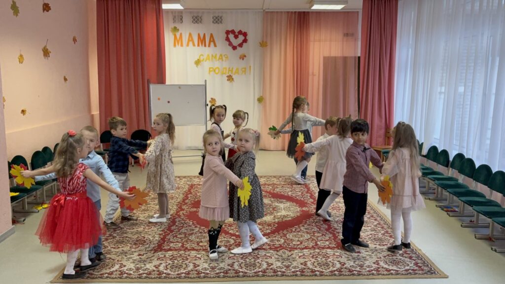 Воспитанники читали стихотворения-поздравления для мам, играли в игру «Ласковое слово для мамы», отгадывали загадки о маминых домашних помощниках, исполняли песни про осень («Осень в золотой косынке», муз. и сл. Н.П.Бобковой, «Ах, какая очень!», муз. и сл. З. Роот), про маму («Мама — лучший друг», муз. Д. Трубачева и В. Трубачевой, сл. А. Пилецкой, «Мама, будь всегда со мною рядом», муз. К. Брейтбурга, сл. Э. Мельник), а также радовали танцевальными композициями («Крошки-ладошки», «Кленовый лист»).