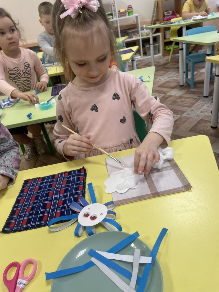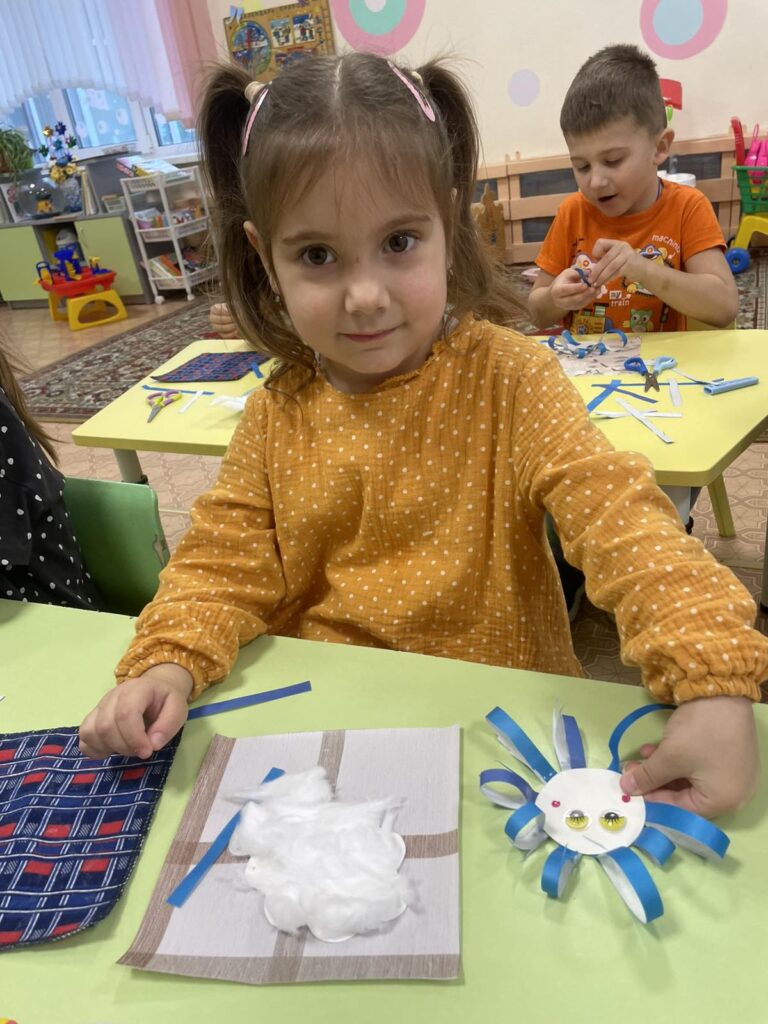 Но так как за окошком у нас только начало зимы и ещё совсем мало снега, ребята не оставили её в одиночестве, а вместе с ней погрузились в сказку и сделали много ярких и озорных подружек-снежинок. Теперь Снежинке точно не будет скучно!
