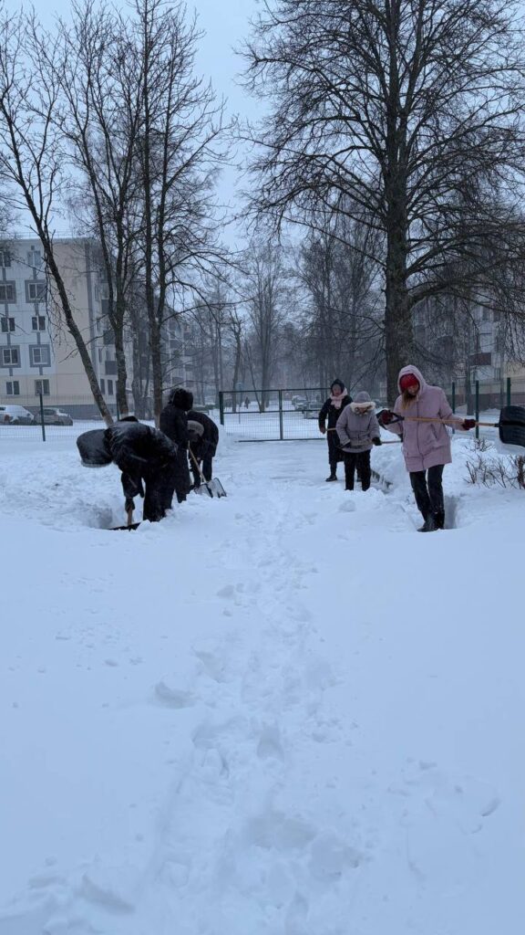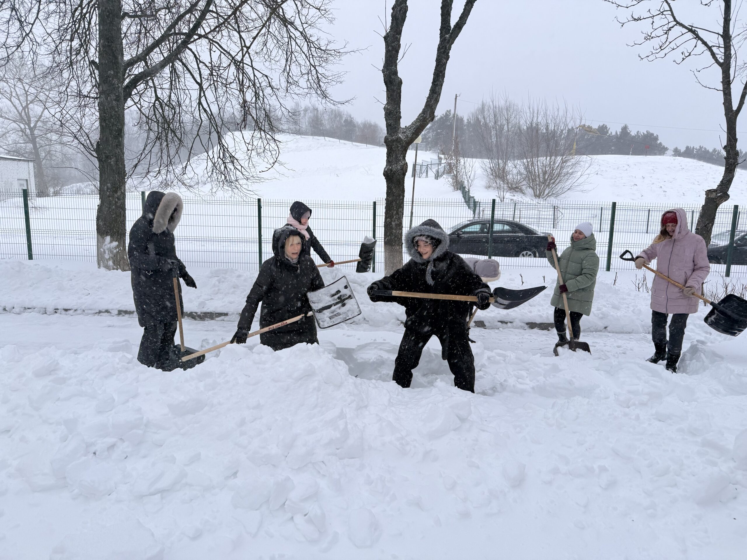 После сильной снежной метели, которая оставила после себя внушительные сугробы, сотрудники нашего детского сада дружно вышли на улицу, чтобы расчистить территорию от снежных заносов. Все вместе мы приложили усилия, чтобы двор снова стал безопасным и удобным для наших малышей
