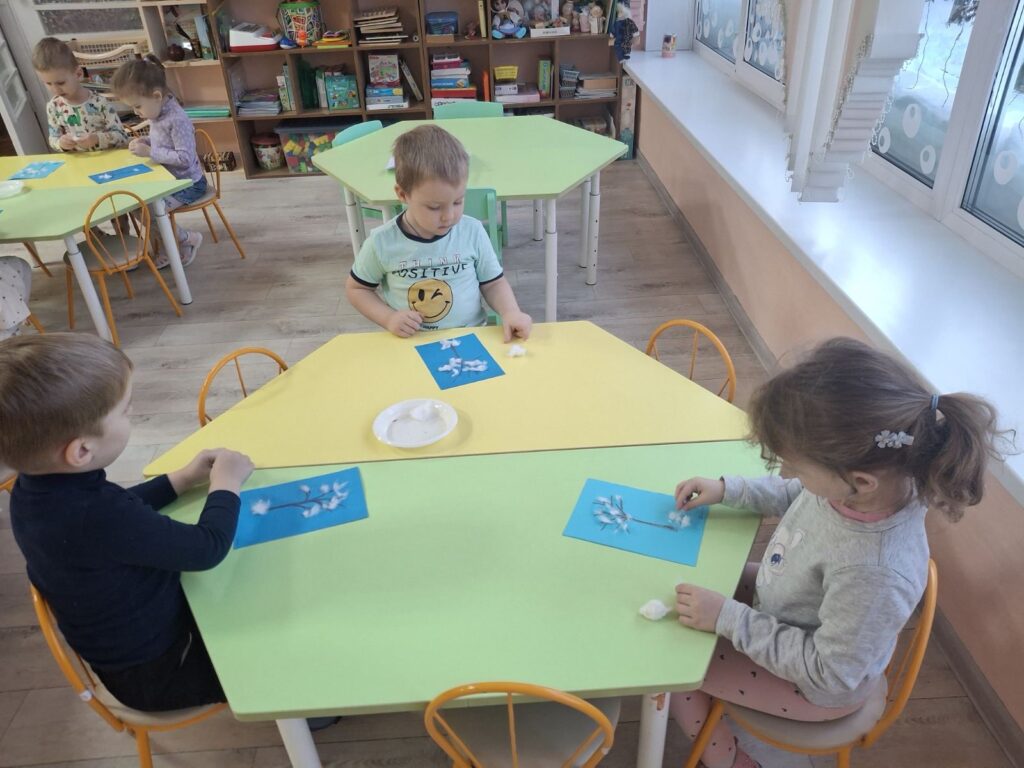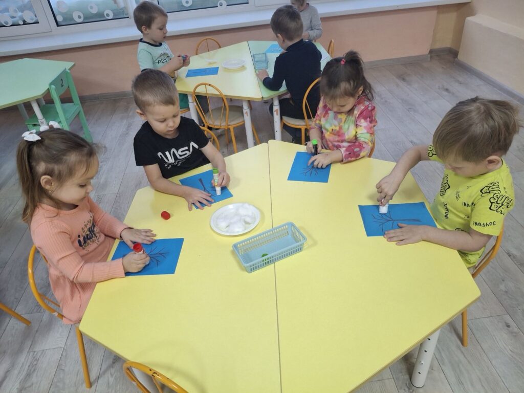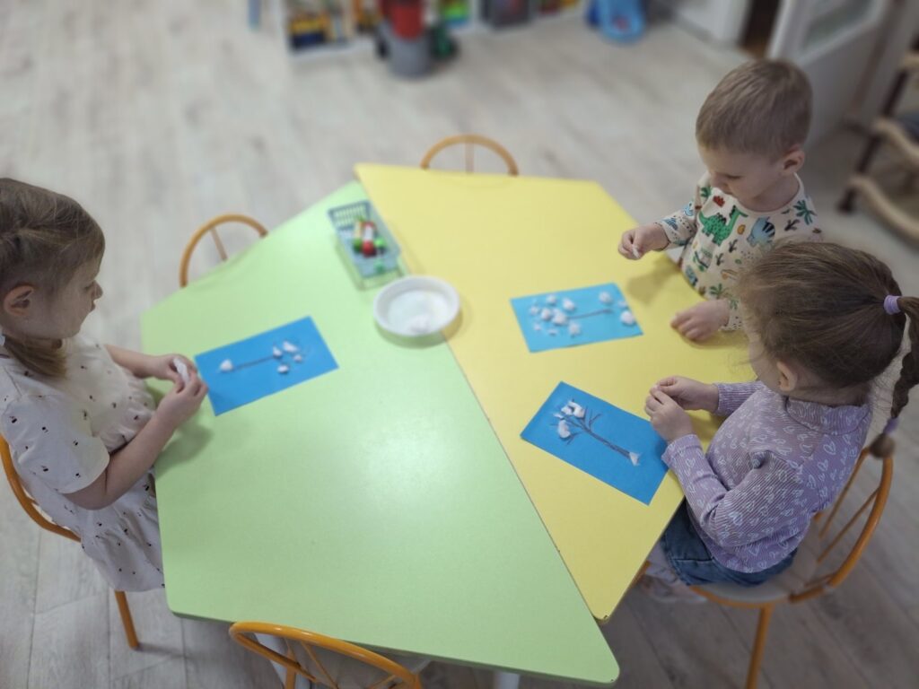 Воспитанники закрепили свои знания во время коллективной игры «Игра по сезонам». Ребята научились определять как деревья изменяются в разное время года. Во время в аппликационной деятельности дети «укрывали» деревья от мороза, проявляя бережное и заботливое отношение к природе.
