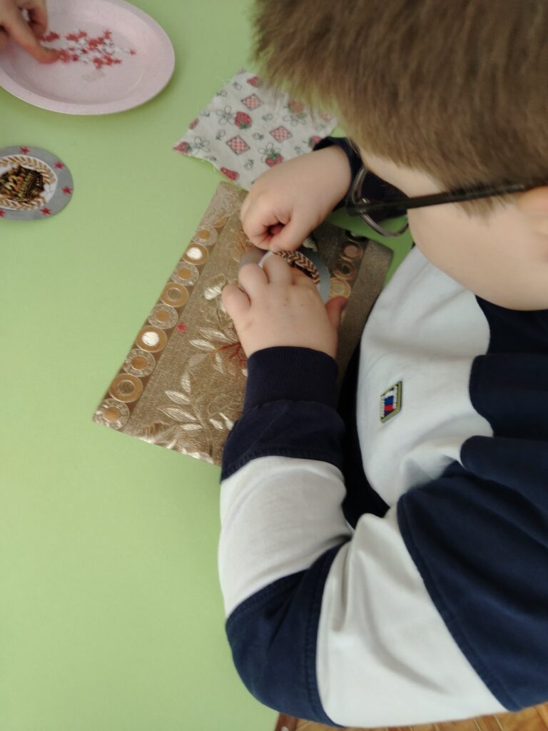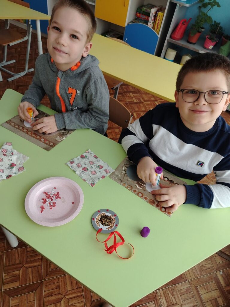 Ребята с энтузиазмом взялись за дело: вырезали силуэты, эмблемы, посвященные 23 февраля, и сияющие звездочки. В процессе работы дети оттачивали навыки вырезания округлых форм, учились аккуратно наносить клейстер и точно приклеивать детали на картон. Каждый ребенок вкладывал в свою работу максимум старания и фантазии, стремясь сделать медаль по-настоящему красивой и уникальной.