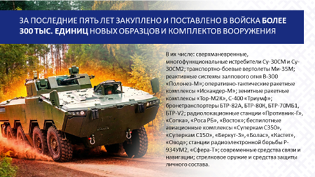 Уделяется должное внимание как тактической и оперативной подготовке, так и оснащению армии новыми, наиболее современными, отечественными системами и образцами вооружения, а также поставляемыми союзной Россией. Это свидетельствует о том, что у нашей страны нет агрессивных намерений, нет построения наступательного потенциала. Вместе с тем необходимая достаточность оборонительной мощи обеспечена.