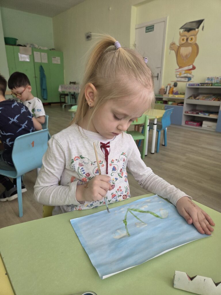 Сегодня наши маленькие художники из средней группы № 1 окунулись в волшебный мир весны и создали свои первые шедевры! Мы рисовали красками на тему «Первый цветок подснежник». Яркие краски оживляли бумагу, превращая ее в полянку, где из-под снега вырос и распустился самый смелый и красивый вестник весны. Каждый подснежник получился уникальным, со своим характером, ведь дети вложили в них частичку своего видения этого чуда природы. Полюбуйтесь их работами – они такие трогательные и искренние!»
