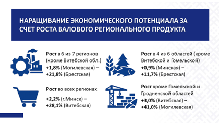 (от 101,8% в Витебской области до 110,6% – в Брестской). Очевидно, что сохраняется положительная динамика в региональном развитии;