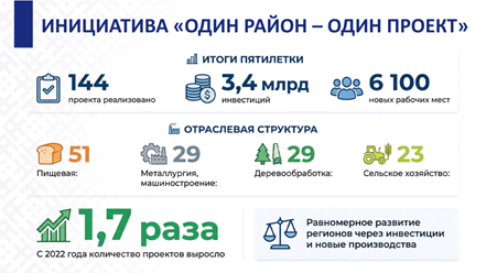 За годы осуществления инициативы «Один район – один проект» (начиная с 2022 года) количество проектов возросло в 1,7 раза, в ряде регионов обеспечена реализация двух-трех проектов.