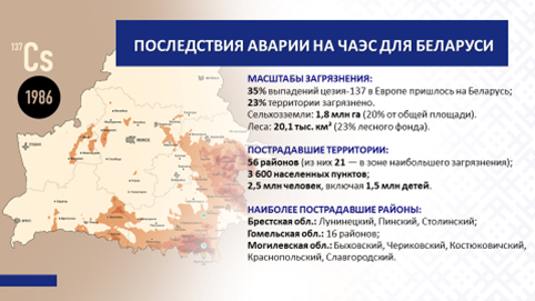 Почти четверть территории Беларуси, на которой проживала пятая часть населения страны, оказалась загрязнена радионуклидами. Прекратили существование 479 населенных пунктов (в Гомельской области – 306, в Могилевской – 173). По подсчетам специалистов суммарный ущерб оценивается в 32 бюджета республики 1985 года.